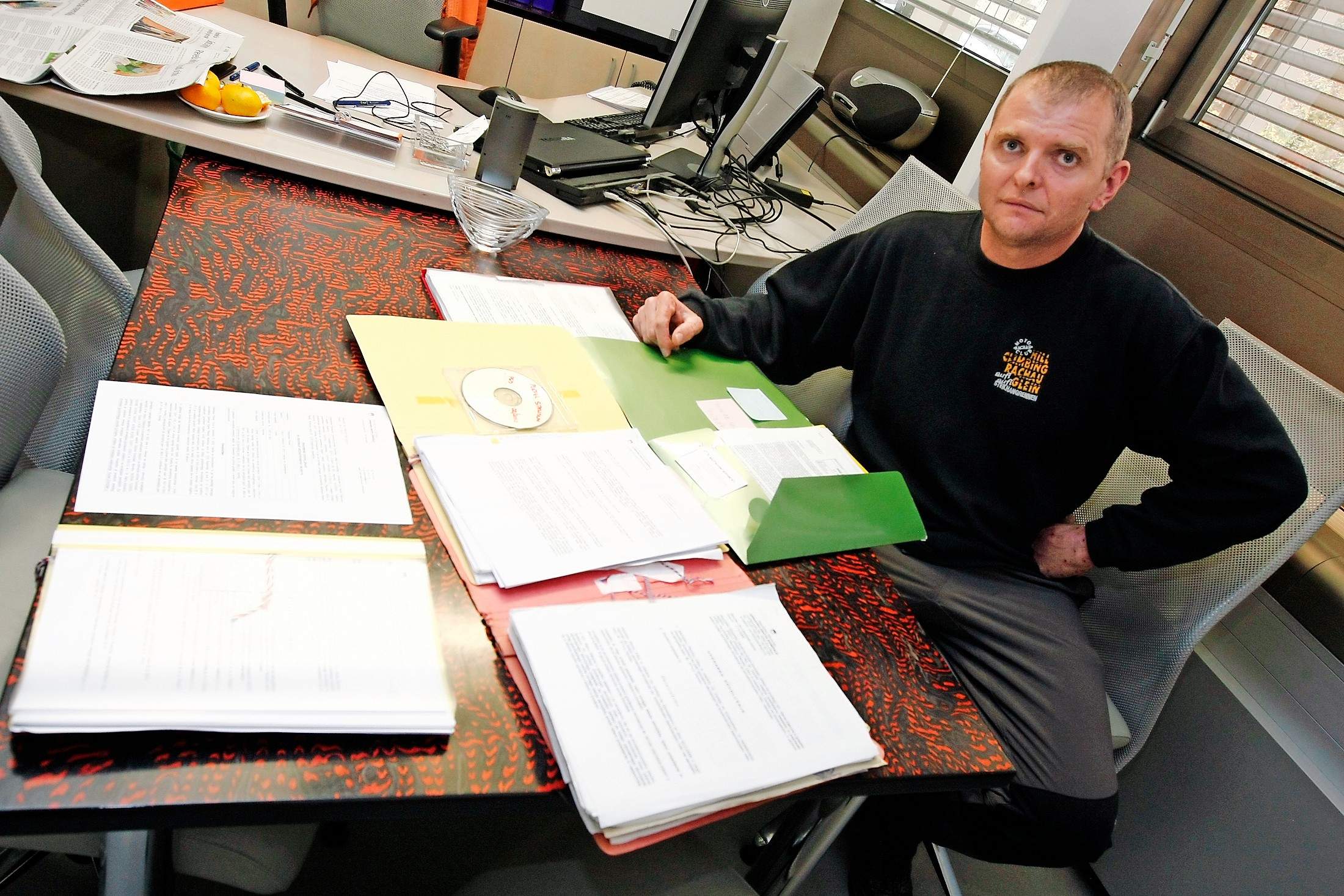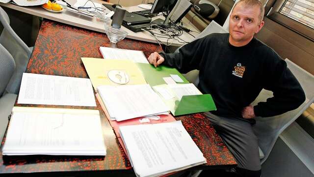 Stane Plevel z dokumentacijo, ki jo je prinesel v uredništvo. / Foto: Gorazd Kavčič