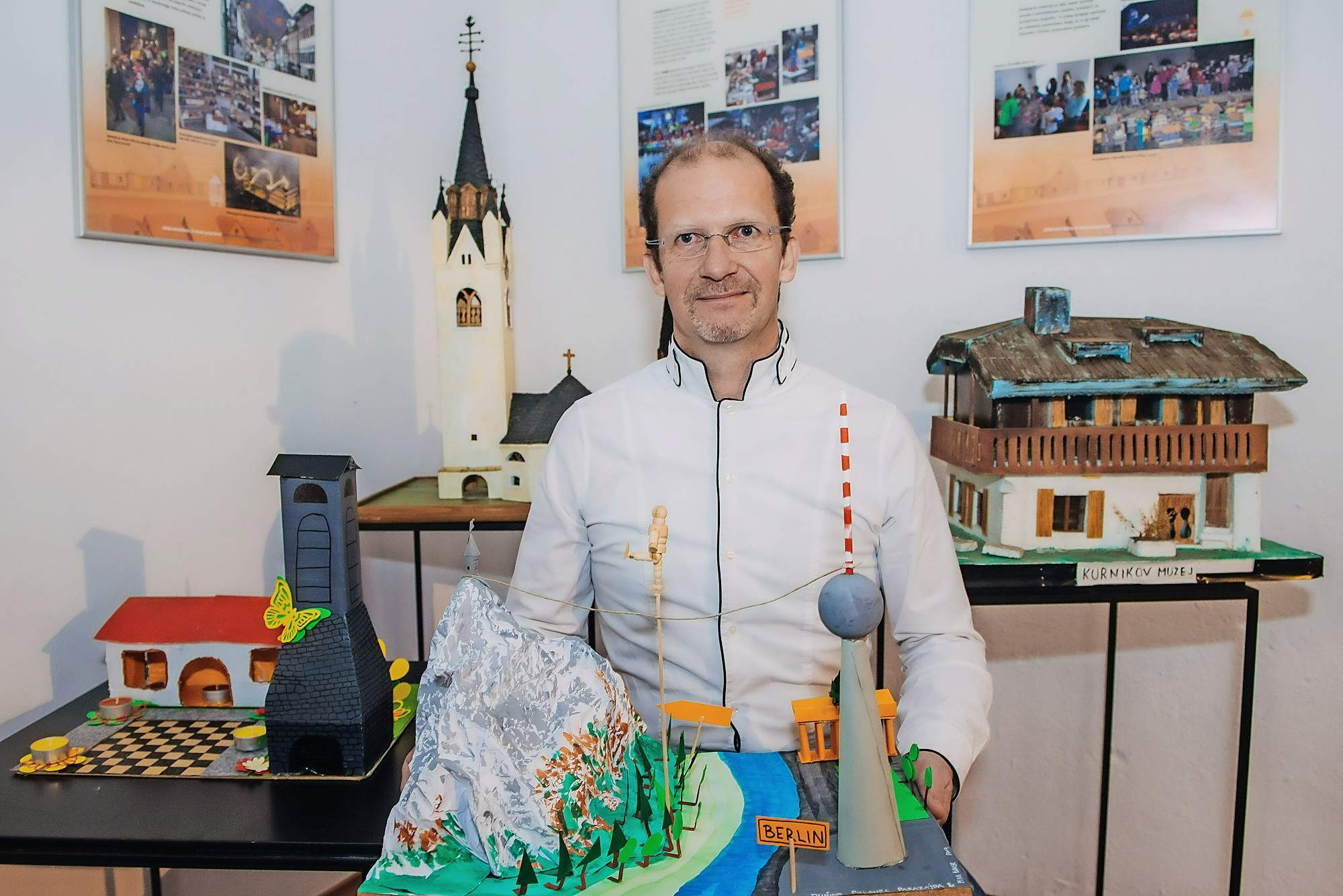 Dr. Bojan Knific ima v rokah gregorčka iz Berlina; slovenski izseljenci v okviru veleposlaništva in šole slovenskega jezika vsako leto izdelujejo gregorčke in jih potem spustijo v vodo. S tem se istovetijo s Slovenijo in ohranjajo svojo dediščino. / Foto: Primož Pičulin